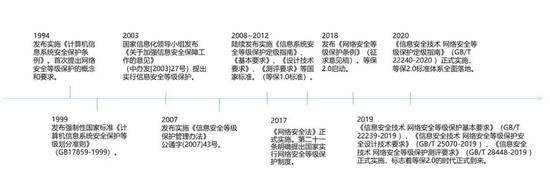 在我国等保的要求最早是1994年颁布实施的《计算机信息系统安全保护条例》中提出的。该条例第九条规定计算机信息系统实行安全等级保护。2007年,公安部等部门联合发布的《信息系统等级保护管理办法》是等保1.0时代的核心法律规范。随后公安部、工信部等各部门又陆续制定了《信息系统等级保护备案实施细则》及一系列配套的国家标准以保障等保制度的实施与推进。但在等保1.0时期,各行业对等保制度的理解尚未深入,涉及领域有限,执法力度及范围也未达到理想效果。